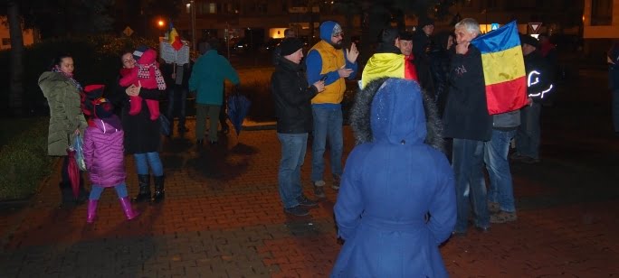 Mitingul anti-PSD va continua și mâine pe aceeași rețetă: întâlnire în fața Prefecturii în jurul orei 19, pancarte și discuții libere între manifestanții care între timp au devenit amici.