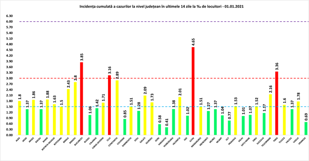 Situația epidemiologică la nivelul județului Bistrița-Năsăud, astăzi, 01.01.2021, este următoarea: