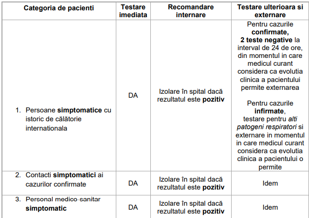Institutului Naţional de Sănătate Publică a anunțat că algoritmul de testare pentru COVID-19 a fost actualizat.