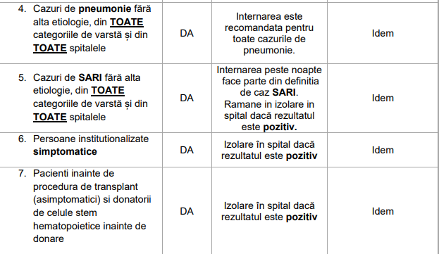 - Cazuri de SARI (infecții respiratorii acute severe) fără altă etiologie, din toate categoriile de vârstă şi din toate spitalele;