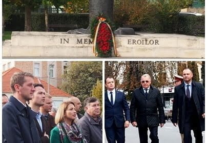 Cu toate ca Bistrita dispune de un CIMITIR AL ERIOLOR foarte bine ralizat, din nou, Ziua armatei s-a sarbatorit langa controversatul monument in forma de „sula” care a fost instalat langa Prefectura in 2009 exact pe locul unde pana atunci a existat bustul lui Petru Rares si care a fost mutat de aici numai pentru a satisface comoditatea politicienilor de astazi de a nu se mai deplasa pentru a depune o coroana de flori la locul unde isi dorm somnul de veci eroii neamului. Dupa cum se cunoaste din presa vremii, cu prilejul sfintirii Cimitirului Eroilor pe data de 28 august 1938, dupa Sfanta Liturghie savarsita la Catedrala ortodoxa, de pe Odobescu s-a organizat o procesiune la care participantii au strabatut pe jos distanta de la Catedrala Ortodoxa pana pe Drumul Tarpiului, la Cimitirul Eroilor.