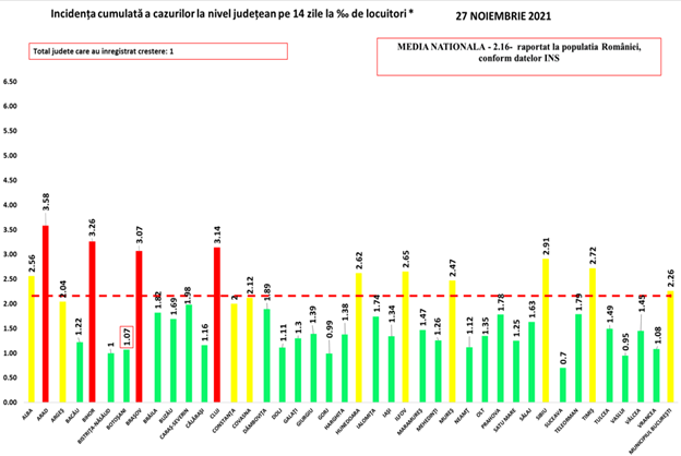 Până sâmbătă, 27 noiembrie, la nivelul județului Bistrița-Năsăud au fost raportate următoarele date referitoare la situația epidemiologică privind îmbolnăvirea cu noul coronavirus: