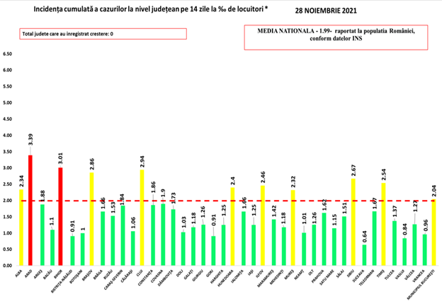 Până duminică, 28 noiembrie, la nivelul județului Bistrița-Năsăud au fost raportate următoarele date referitoare la situația epidemiologică privind îmbolnăvirea cu noul coronavirus: