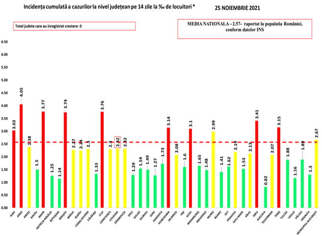 Până joi, 25 noiembrie, la nivelul județului Bistrița-Năsăud au fost raportate următoarele date referitoare la situația epidemiologică privind îmbolnăvirea cu noul coronavirus:
