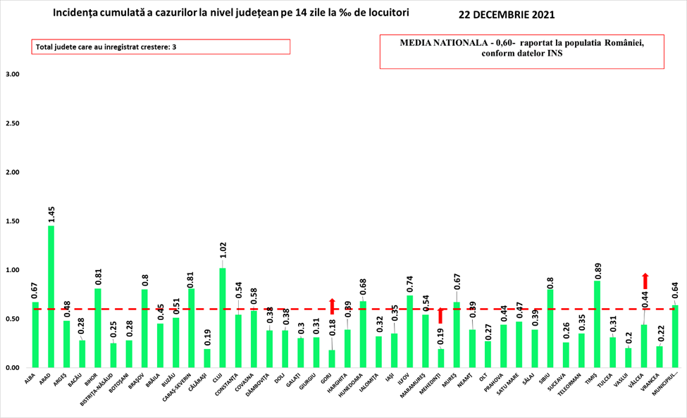 În intervalul 21.12.2021 (10:00) – 22.12.2021 (10:00) au fost raportate de către INSP 62 de decese, dintre care 18 anterioare intervalului de referință, (33 bărbați și 29 femei), ale unor pacienți infectați cu noul coronavirus, internați în spitalele din Alba, Arad, Argeș, Bacău, Brăila, Bistrița-Năsăud, Brașov, Buzău, Caraș-Severin, Constanța, Dâmbovița, Dolj, Galați, Gorj, Harghita, Hunedoara, Maramureș, Mureș, Neamț, Olt, Prahova, Sălaj, Suceava, Timiș și Vrancea.