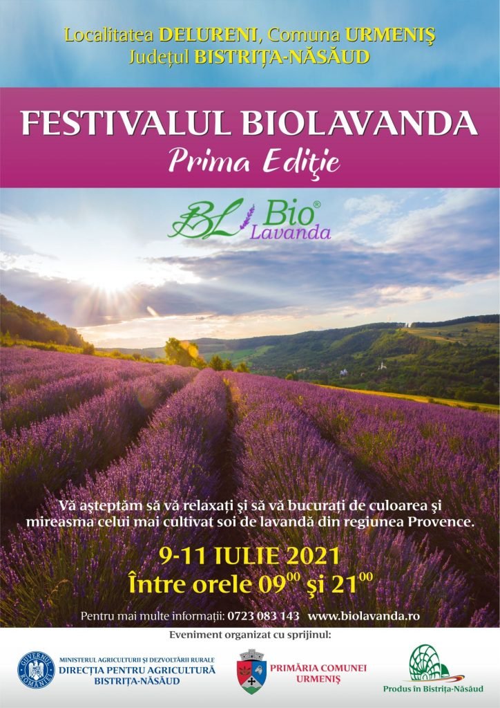 Intitulat ”Festivalul BioLavanda”, evenimentul îi îndeamnă pe bistrițeni și nu numai să admire cel mai cultivat soi de lavandă din Regiunea Provence și să surprindă nuanțele vii de violet în cele mai frumoase fotografii.