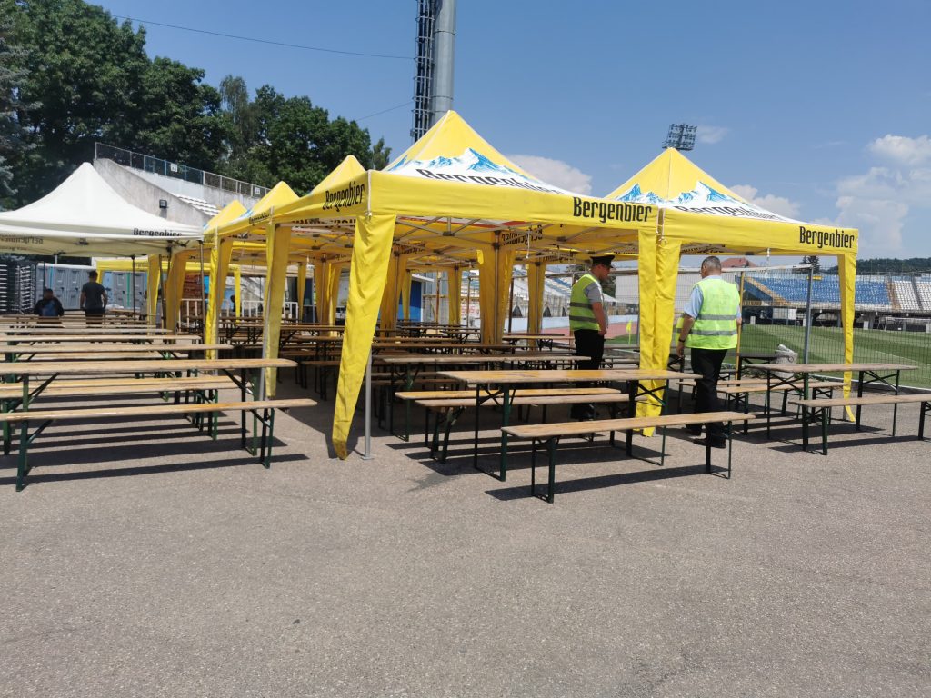 Iubitorii fotbalului sunt așteptați la eveniment, motiv pentru care Consiliul Județean a amplasat terase cu mici și bere în incinta stadionului!