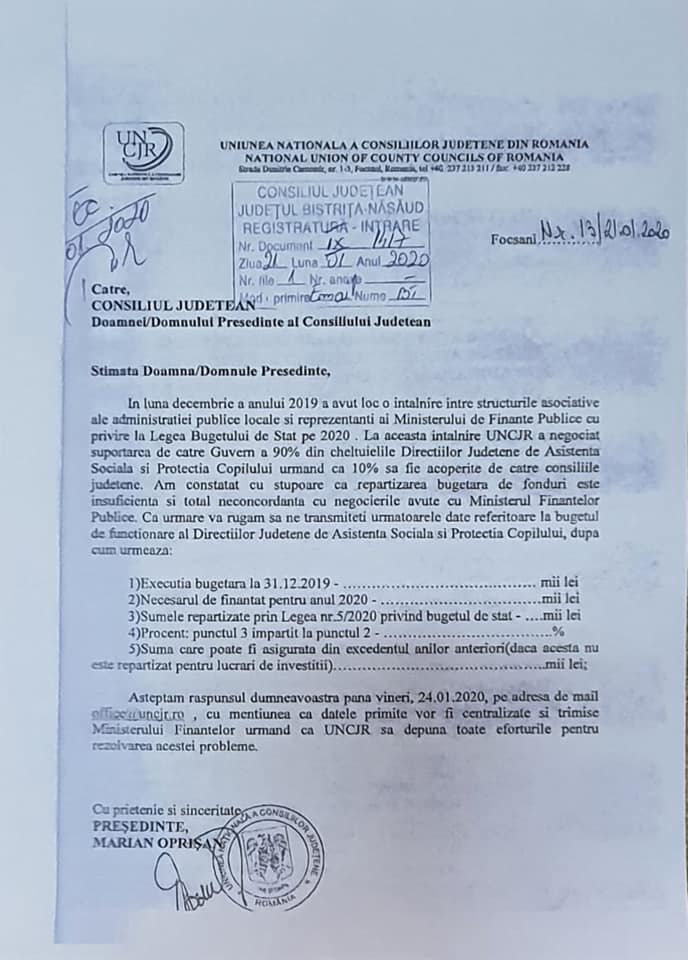 Mai mult, din februarie până acum, președintele CJ Bistrița-Năsăud susține că a trimis 17 adrese către Guvernul României, Ministerul Muncii și Protecției Sociale și Ministerul Finanțelor, în care a atras atenția că NU a fost rrespectată obligația de a contribui la fondurile necesare funcționării sistemului de asistență socială și protecția copilului.