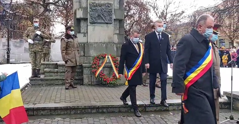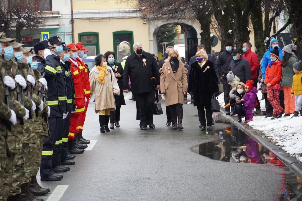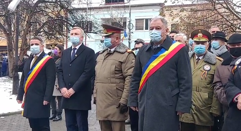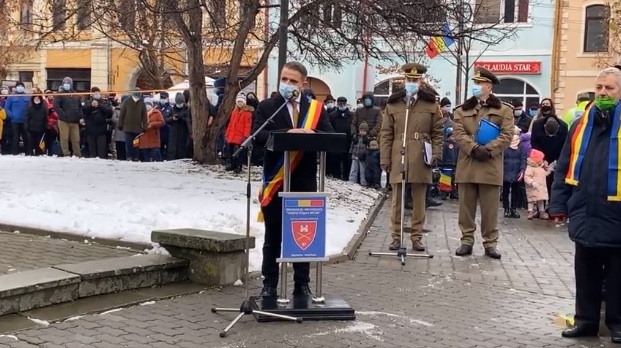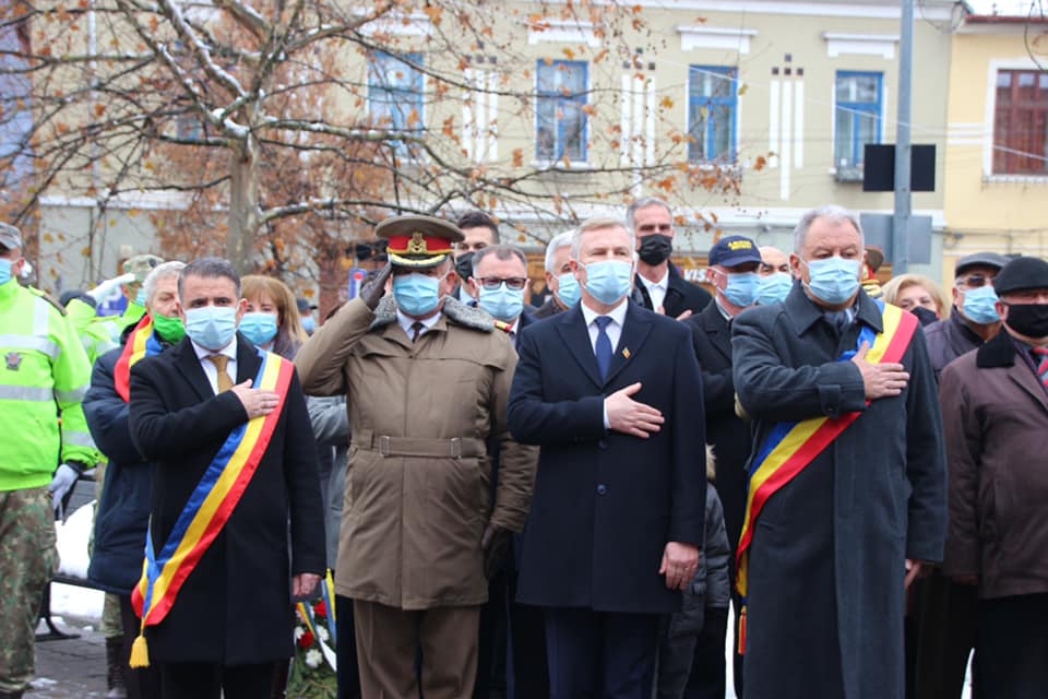 Radu Moldovan, Ioan Turc, Stelian Dolha și o parte din directorii instituțiior deconcentrate au participat la ceremonialul militar-religios organizat în fața Primăriei. De Ziua Națională, oficialitățile locale au depus o coroană în memoria eroilor care s-au jertfit pentru patrie.