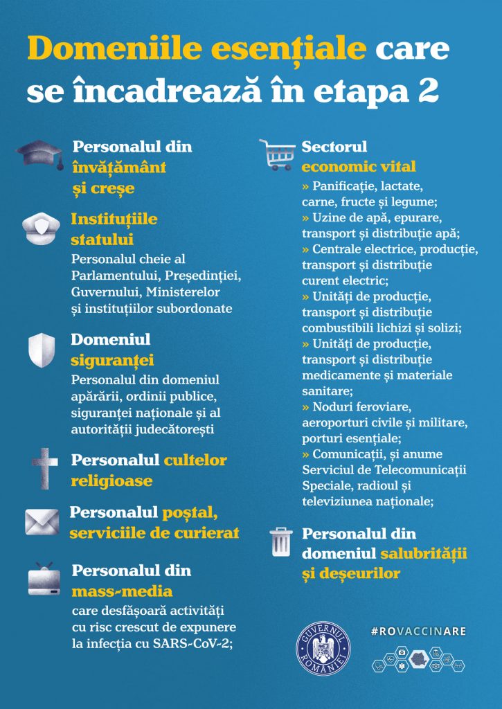 Categoriile de persoane eligibile pentru înscriere în etapa a doua de vaccinare împotriva COVID-19