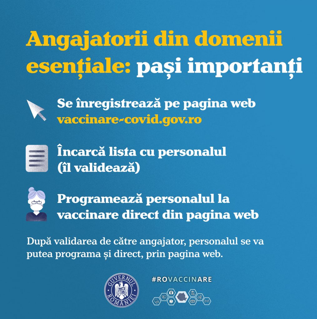 c) Lucrătorii care desfășoară activități în domenii-cheie, esențiale se înscriu prin intermediul angajatorilor.