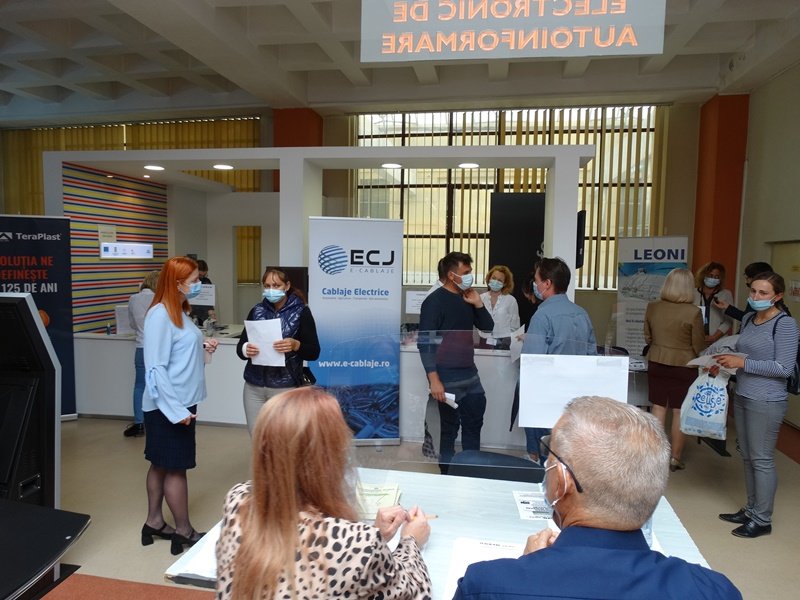 Datorită condiţiilor impuse de pandemie, intrarea persoanelor la bursă s-a făcut în serie mică, şi pe masură ce solicitanţii de locuri de muncă îşi finalizau interviul cu angajatorii, intra o nouă serie, cu respectarea normelor COVID.