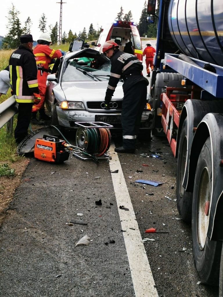 ”Cele două persoane din autoturism, un bărbat şi o femeie, au rămas încarcerate. La faţa locului s-a deplasat modulul SMURD de la Punctul de Lucru Poiana Stampei, cu o autospecială pentru descarcerare şi o ambulanţă SMURD B2. Cele două victime au fost descarcerate şi, din nefericire, bărbatul (60 ani) era decedat, iar femeia (56 ani), în stare de inconştienţă, a fost transportată la spital”, a transmis ISU Suceava.