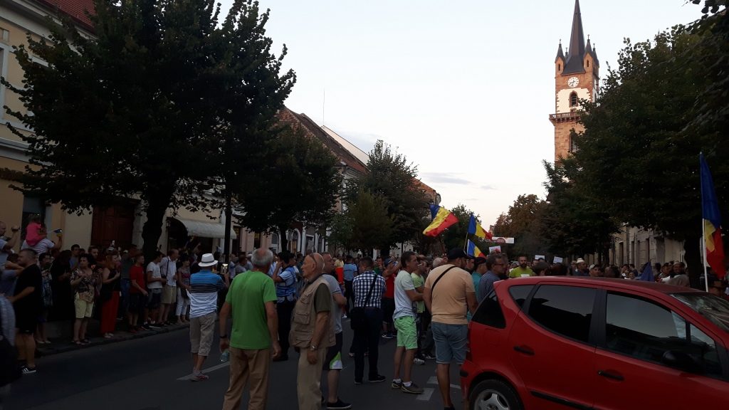 După aproximativ o oră, mulțimea a mărșăluit pe traseul: Pietonal – Piața Centrală – Șincai – sediul PSD – Poșta Veche – Gării – Decebal – Crinilor – Prefectură!