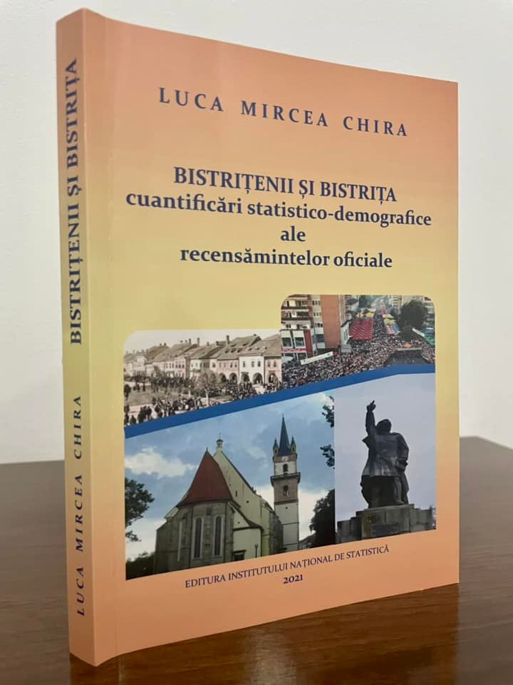 Directorul Direcției Regionale de Statistică Bistrița-Năsăud, Luca Mircea Chira, cel care conduce această instituție de aproximativ 30 de ani, a lansat joi, la Palatul Culturii din Bistrița, volumul ”Bistrițenii și Bistrița. Cuantificări statistico-demografice ale recensămintelor oficiale”. Lucrarea este o ”istorie în numere” și se adresează nu doar specialiștilor în domeniu, ci și celor care vor să descopere lucruri interesante și mai puțin știute despre municipiul Bistrița și despre identitatea acestuia.