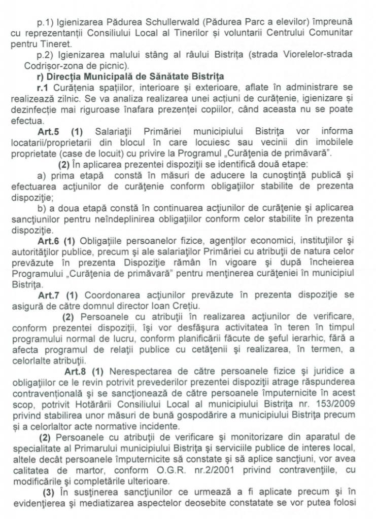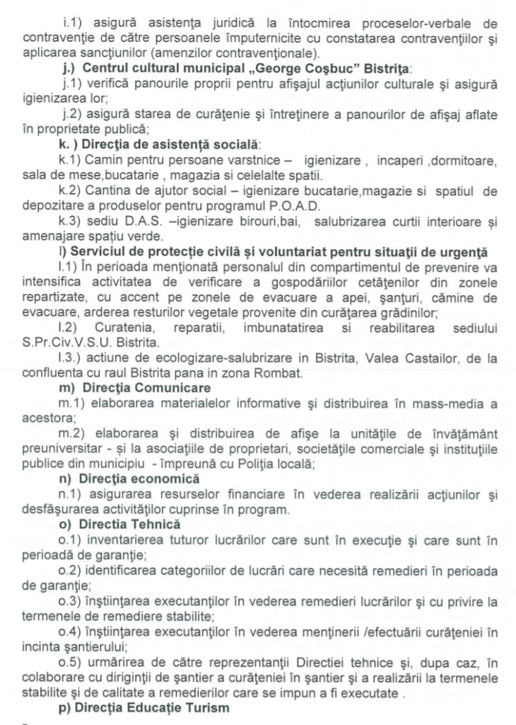 De asemenea, la campanie vor lua parte și angajați ai Primăriei Bistrița, cărora primarul, printr-o dispoziție, le-a trasat sarcini clare: