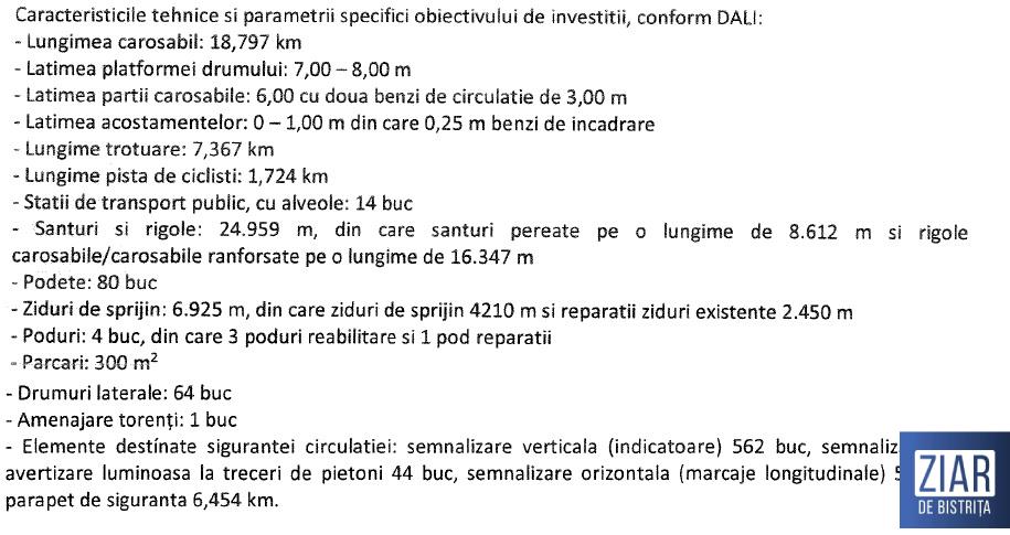 Potrivit caietului de sarcini, este prevăzută reabilitarea tronsonului în lungime de circa 19 km, precum și amenajarea trotuarelor, a podețelor, dar și a unor piste pentru bicicliști și a unor stații pentru autobuze.