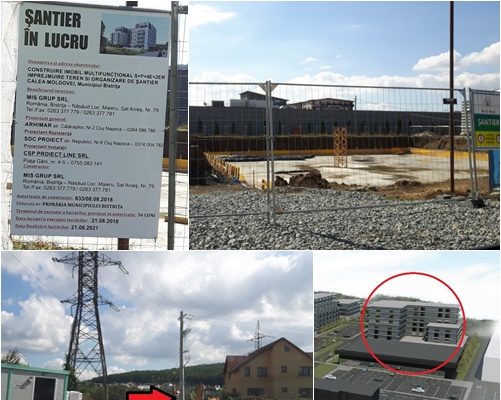 MIS Grup construiește un BLOC IMENS, în partea de sus a orașului, în cartierul din zona mall-ului! Blocul va avea 68 de apartamente și un spațiu comercial, la parter! Locurile de parcare NU sunt suficiente, dar Primăria Bistrița ignoră acest aspect sensibil! Stâlpul de ÎNALTĂ tensiune e la câțiva metri distanță, sub limita legală!
