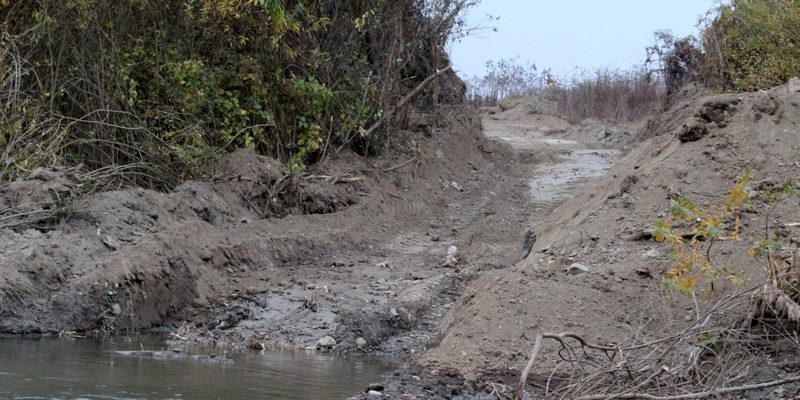 La comanda șefului Traian Larionesi, anajatul firmei FRASINUL a intervenit și a rupt digul de protecție a malului pentru a facilita accesul camioanelor cât mai aproape de apă, cu scopul de a fi umplute cu prundiș excavat din albie. Această acțiune reprezintă o faptă penală.