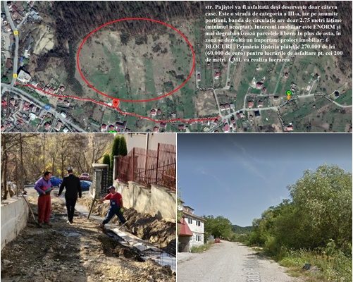 Strada Pajiștei poate fi considerată o stradă „de dos” și deservește câteva proprietăți, dar se pare că interesul imobiliar a făcut ca Primăria Bistrița s-o treacă în fața altor străzi la programul de asfaltare. Interesul unor dezvoltatori imobiliari a fost mai important decât interesul general și în continuare administrația Crețu este corijentă la capitolul infrastructură.