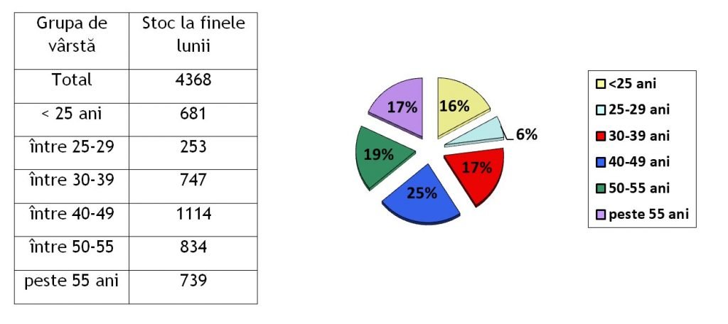 Pe grupe de vârstă, structura șomajului se prezintă astfel: