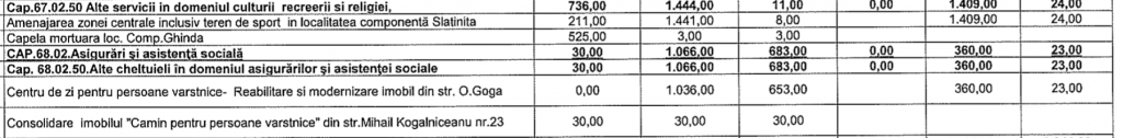 Secțiunea Asigurări și Asistență Socială – se propune alocarea sumei de 30.000 de lei pentru investiții prin credite de angajament și a sumei de aproximativ un milion de lei pentru investiții prin credite bugetare