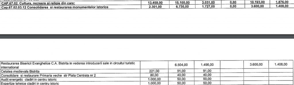 La capitolul 67.02.05.03- „Intretinere grădini publice, parcuri, zone verzi, baze sportive si de agrement” apare punctul 5, intitulat „Intervenții de urgență în urma alunecării de teren pe amplasamentul pârtiei de schi din Complexul Sportiv Polivalent Bistrita”.