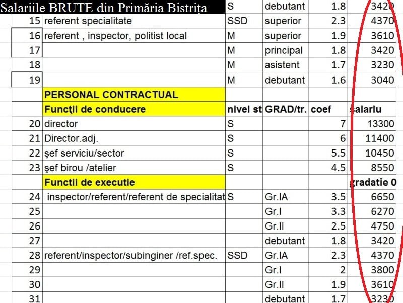 Ce salarii iau funcționarii din Primăria Bistrița!