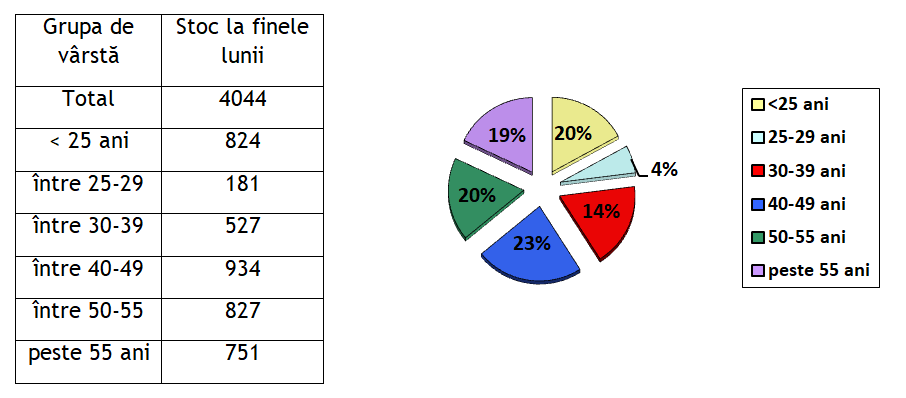 Structura șomajului pe grupe de vârste se prezintă sugestiv astfel:
