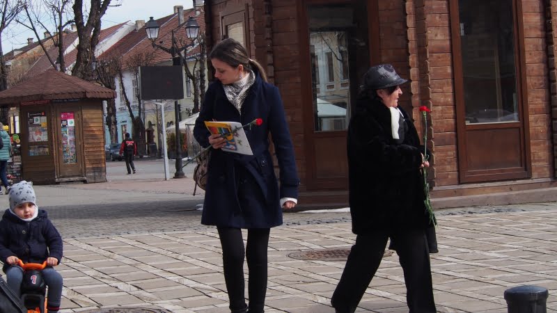 Soția fostului senator Dorin Dobra și fostul prefect Ani Bob au primit flori din partea lui Simionca, dar și mai multe salariate din Primărie care astăzi au avut „zi scurtă” și se afau în plimbare, pe Pietonal.