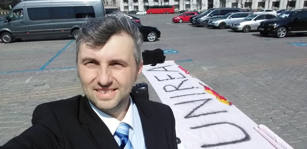Profesorul Florin Bojor a participat de unul singur la protestul pe care tot el l-a organizat la București! În fața Palatului Parlamentului, profesorul de religie a afișat pancarte cu mesaje de Unire a Republicii Moldova cu Țara.