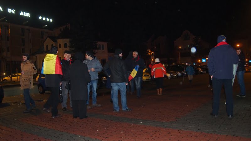 Ministrul Justiției și-a dat demisia, Ordonanța de Urgență 13/2017 a fost abrogată, dar manifestanții continuă să protesteze împotriva PSD-ului. Dispozitivele de jandarmi au stat deoparte și au supravegheat de la distanță întâlnirea bistrițenilor solidari cu țara.