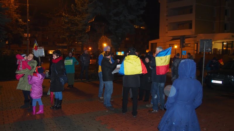Mitingul anti-PSD va continua și mâine pe aceeași rețetă: întâlnire în fața Prefecturii în jurul orei 19, pancarte și discuții libere între manifestanții care între timp au devenit amici.