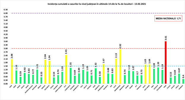 Situația epidemiologică la nivelul județului Bistrița-Năsăud, astăzi, 13.02.2021, este următoarea: