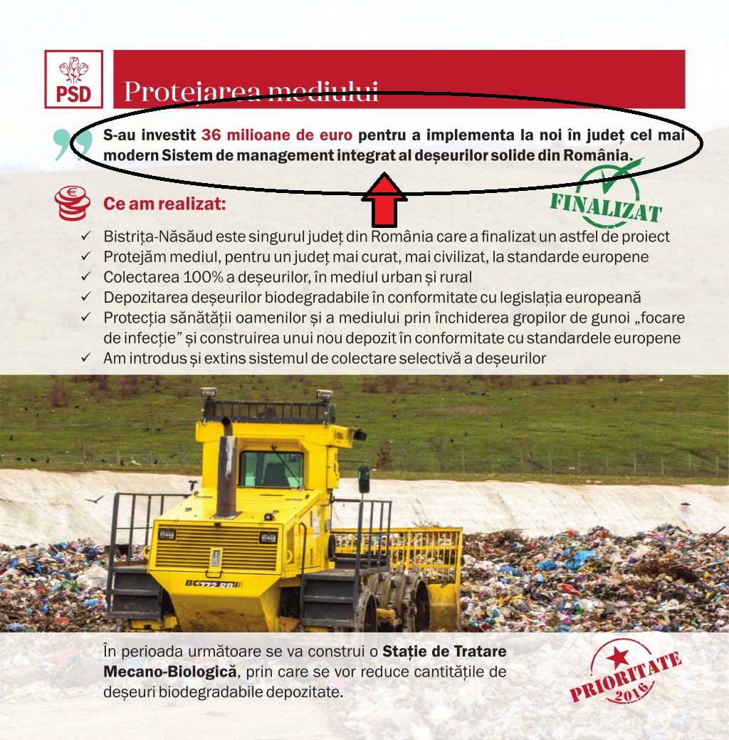 Deși Radu Moldovan NU are niciun merit în acest sens, groapa ecologică de la Tărpiu se regăsește pe broșurile PSD.
