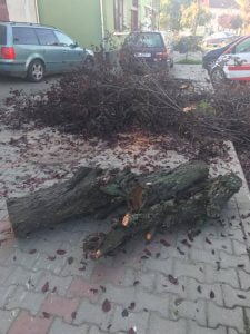 Trecând peste aceste inconveniente ce denota lipsa crasa de respect fata de locuitorii municipiului, aflam următoarele: copacii sunt tăiați pentru a se largi parcarea prin îngustarea trotuarului! Cu alte cuvinte, copacii încurca lătirea parcării?