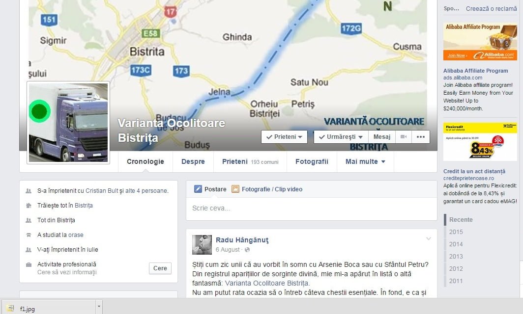 Pagina de facebook intitulată”Varianta ocolitoare Bistrița” sugerează o investiție pe ruta Monariu-Budac, nicidecum pe varianta Sud preferată de actuala administrație.