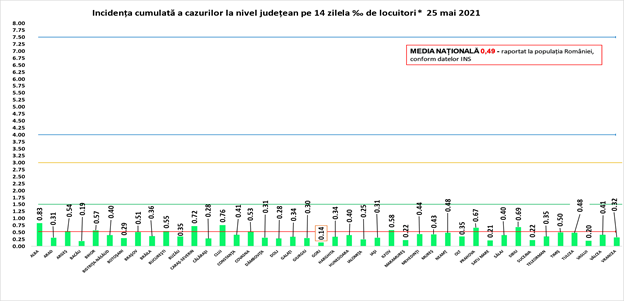 Până astăzi, 25 mai, pe teritoriul României, au fost confirmate 1.076.154 de cazuri de persoane infectate cu noul coronavirus (COVID – 19).
