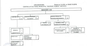Prin Hotărârea de Consiliu Local nr. 183 din 2016, organigrama Centrului Cultural Municipal s-a modificat și s-a înființat un ansamblu folcloric! Practic, s-a DUBLAT numărul de angajați ai instituției. Pe Organigrama Centrului Cultural Municipal sunt prinse 70 de posturi (1 post de director + 69 de posturi de execuție, din care 33 posturi reprezintă cele rezervate dansatorilor din Ansamblul Folcloric înființat în 2016).