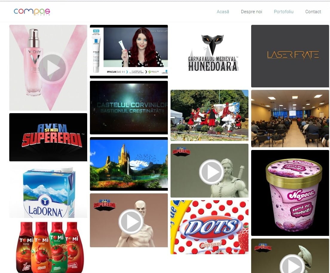 – Compas Studio SRL București – A colaborat cu branduri renumite, cum ar fi: La Dorna, Doncafe, Kinder, Fort, Axe, Audi, Napolact, Dots, Dr. Oetker, La Dorna, Benson and Hedges, Macro Mall Brasov, Danone, Tomi Ketchup, Famous Brands, Anchor Group, InCity, Uzinele de Autoturisme Dacia-Renault, Gold FM. http://compasstudio.ro/