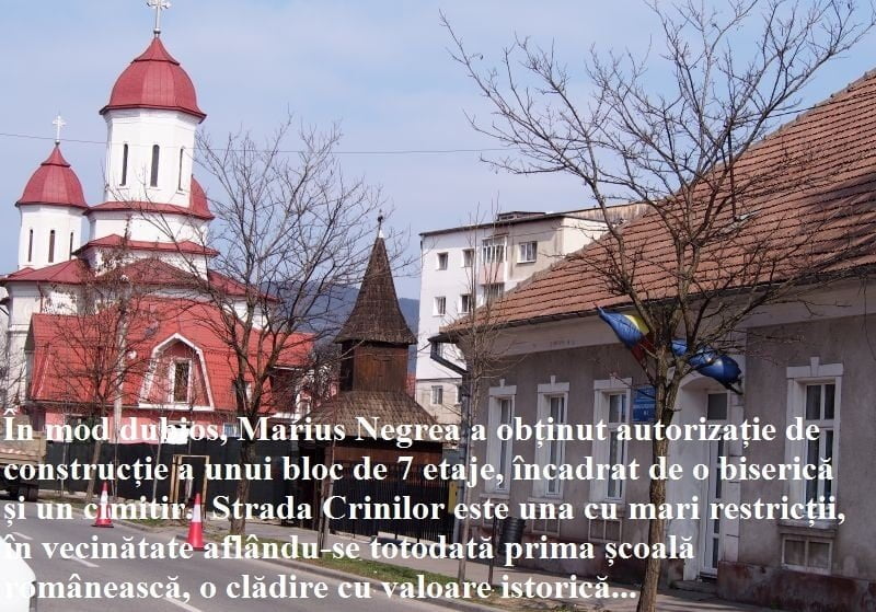 Pe strada Crinilor a început construcția unei clădiri multifuncționale, ultra-moderne. În apropiere se află o biserică ortodoxă, prima școală românească și un vechi cimitir românesc, re-amenajat de curând. Investiția îi aparține lui Marius Negrea, patronul firmei Consult Imobil, una din cele mai bine-cotate firme de profil din oraș. Ziar de Bistrița vă prezintă neregulile din acest caz și cârdășia celor care controlează urbanismul local uniți în jurul lui Marius Negrea.