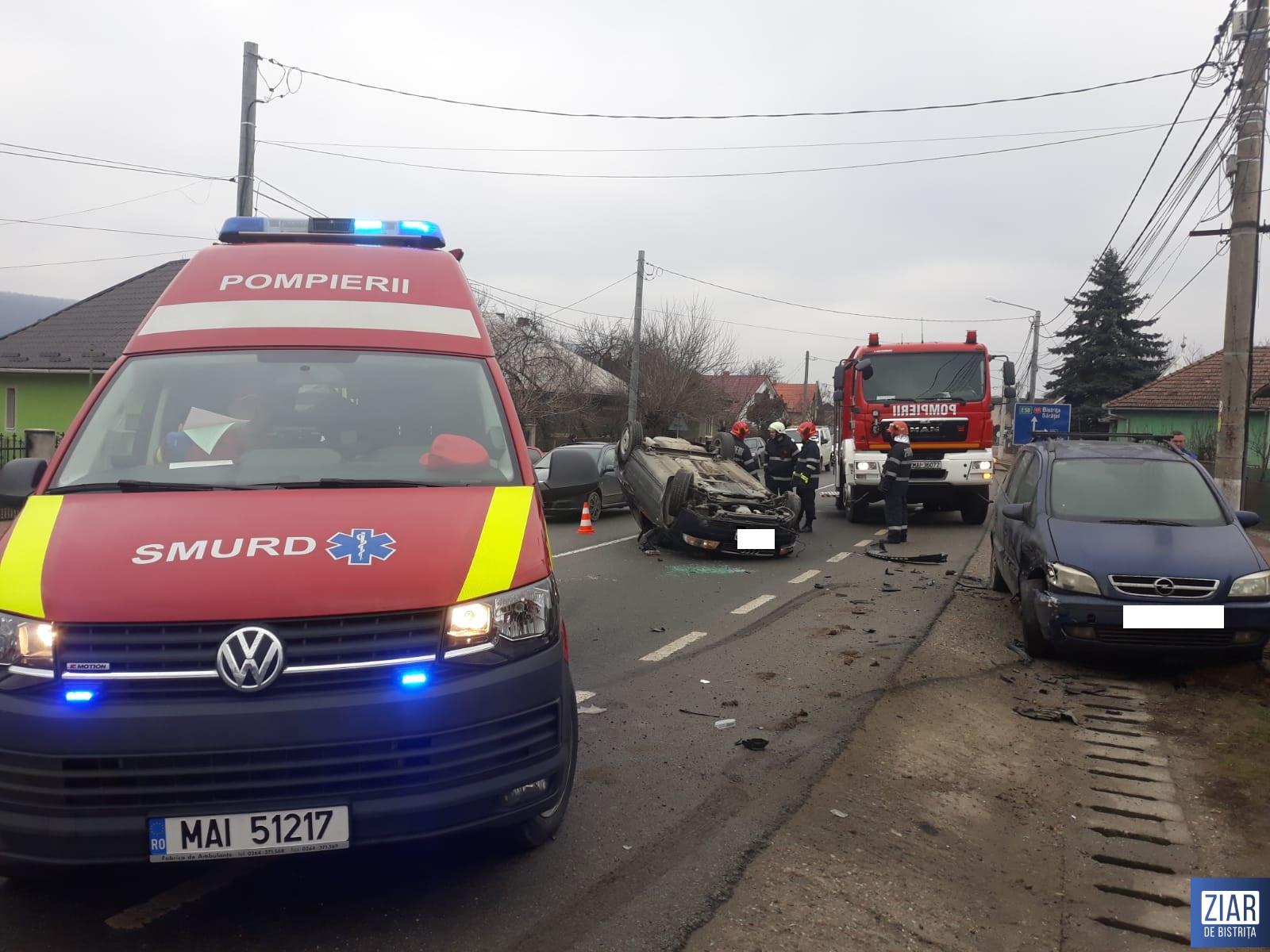 Cascadorie fără voie la Beclean, după ce un șofer a pierdut controlul autoturismului pe care îl conducea și mașina s-a răsturnat.