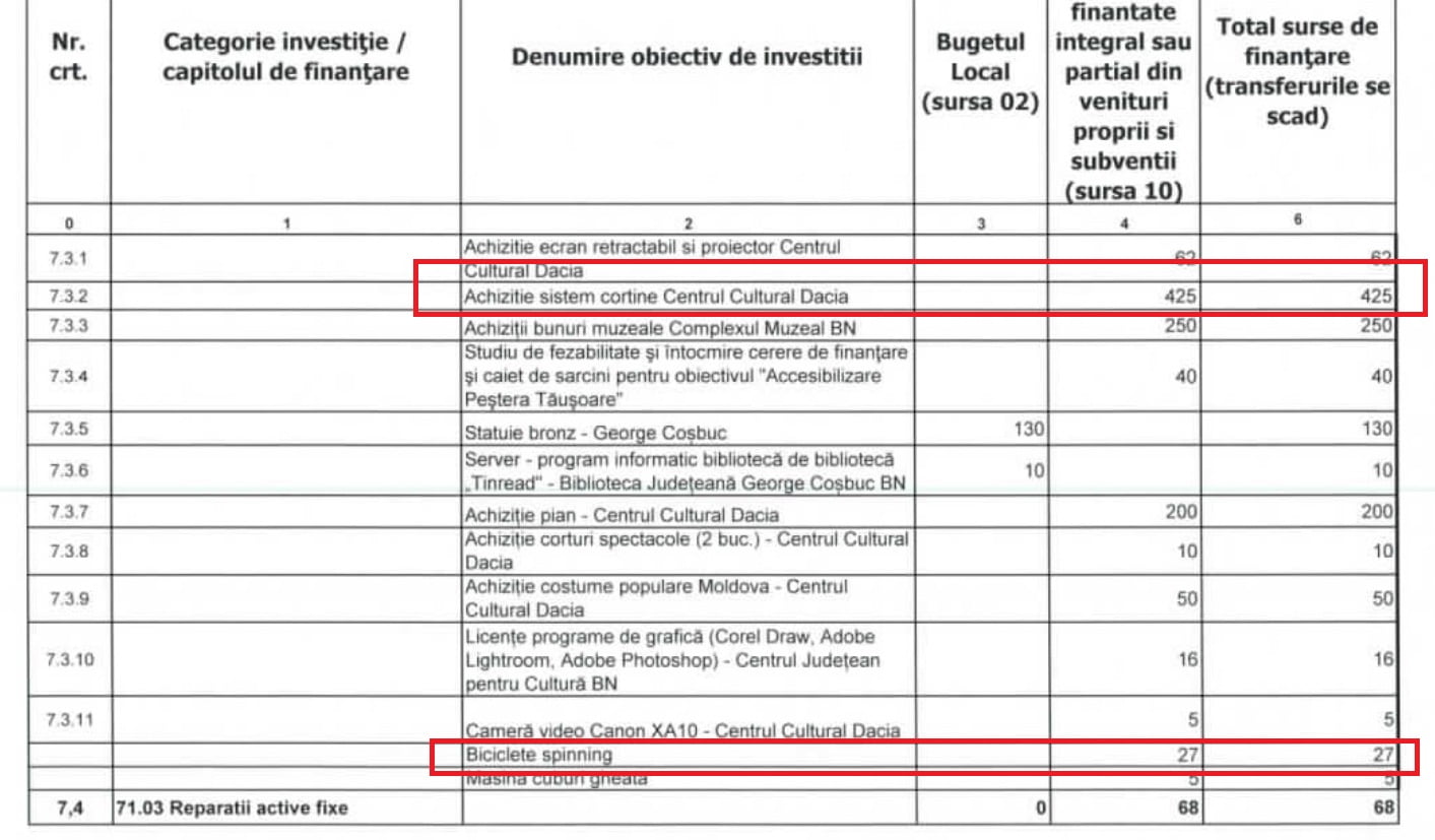 – 425.000 de lei – achiziție sistem de cortine la sala Dacia