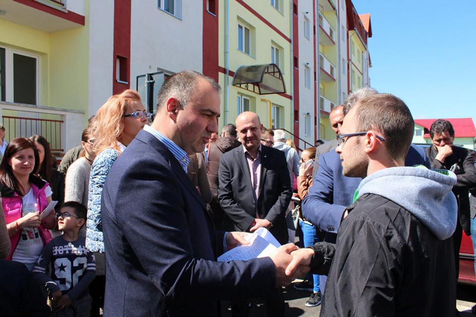 La Bistrița a fost o situație complicată (firmă care a câștigat licitația a intrat în faliment) și construcția celor 3 blocuri ANL a durat 10 ani și s-a derulat pe timpul a 5 guvernări: Năstase- Tăriceanu-Boc-Ponta- Cioloș-Grindeanu. Alături de viceprimarul Cristian Niculae a fost prezent la împărțit chei, președintele PSD: Radu Moldovan și city-managerul George Avram, dar și viceprimarul Gelu Muthi.