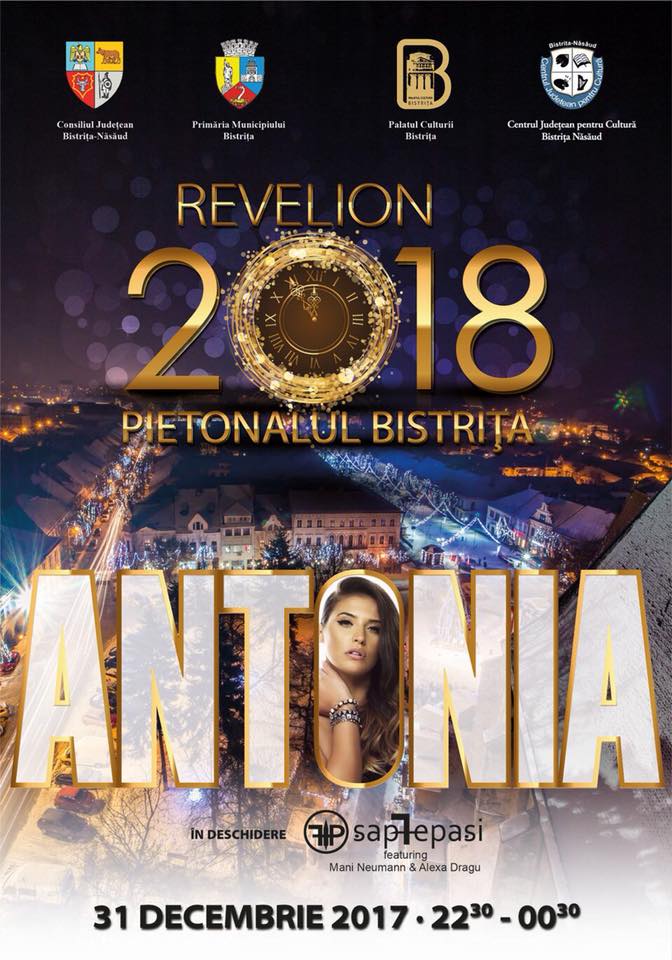 În Bistriţa, concertul de Revelion va începe la ora 22:30 şi se va desfăşura pe Pietonalul Liviu Rebreanu. Cap de afiș al evenimentului de la Bistrița este cântăreața Antonia, în deschiderea concertului urmând să urce pe scenă și trupa “7 Pași” featuring Mari Neumann și Alexa Dragu.