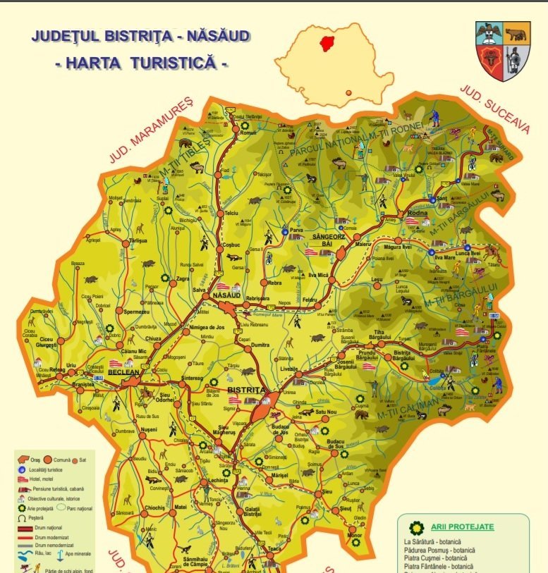 La descrierea județului în rubrica ISTORIE sunt copiate date generale, de pe Wikipedia. La agrement sunt prezentate principalele obiective: Colibița, Tihuța și Munții Rodnei: descriere, dar fără trasee în timp real care să ducă turistul din punctul unde se află înspre obiectivele prezentate.
