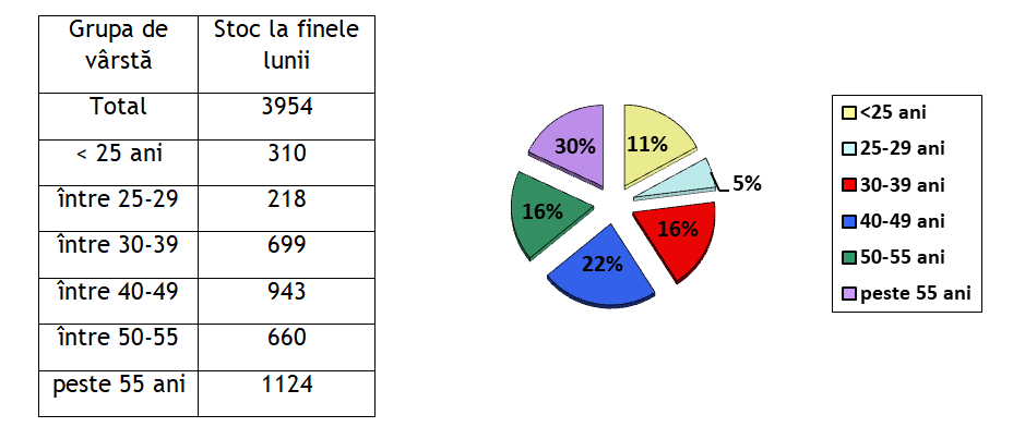 Structura șomajului pe grupe de vârste se prezintă sugestiv astfel: