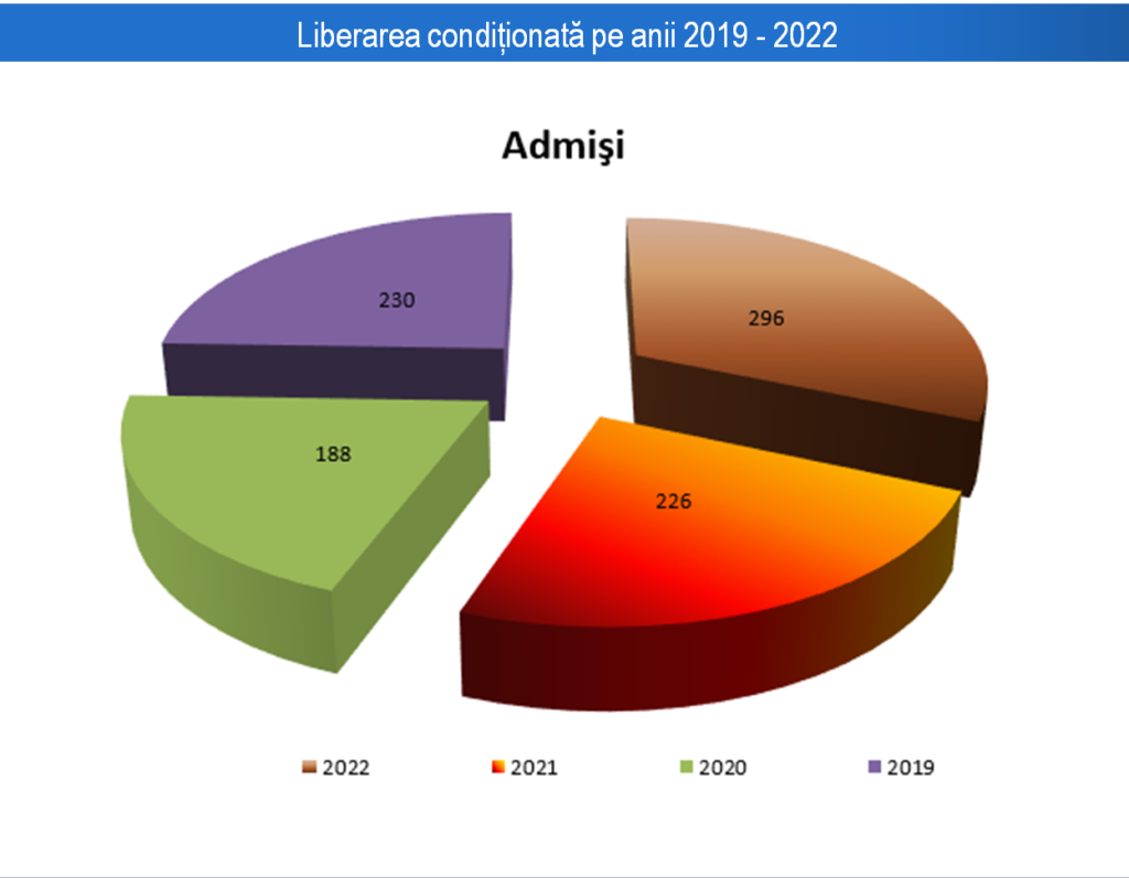 Pe parcursul anului trecut, comisia de propuneri pentru liberare condiţionată şi-a desfăşurat activitatea în 52 de şedinţe. ”Au fost discutate 666 persoane, din care 296 admise și 370 respinse. 180 din cele respinse au făcut cerere de liberare condiționată, instanţa de judecată reducând termenul în 7 cazuri și dispunând liberarea condiţionată în 22 cazuri. Pentru 82 de persoane private de libertate s-a respins propunerea de liberare condiţionată formulată de comisie”, se mai arată în raport.