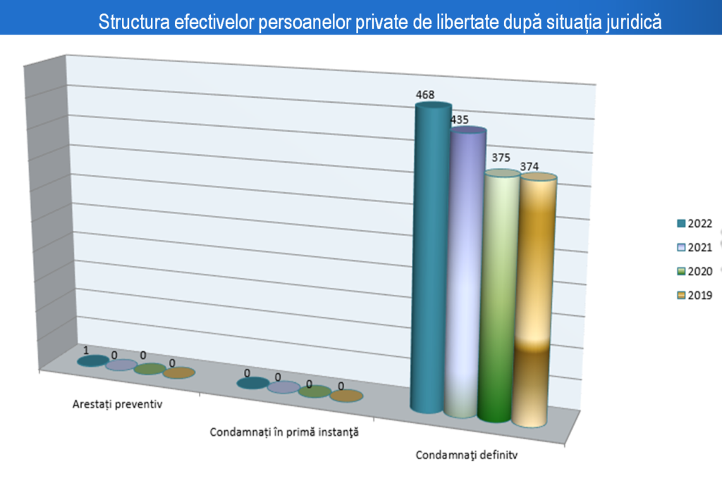 ”Dintre cele 469 de persoane private de libertate, 468 erau condamnate definitiv și una era arestată preventiv. De asemenea, 3 persoane erau condamnate până la un an, 317 între 1- 5 ani, 131 între 5-15 ani și 17 peste 15 ani”, se arată în bilanțul dat publicității de Penitenciarul Bistrița.