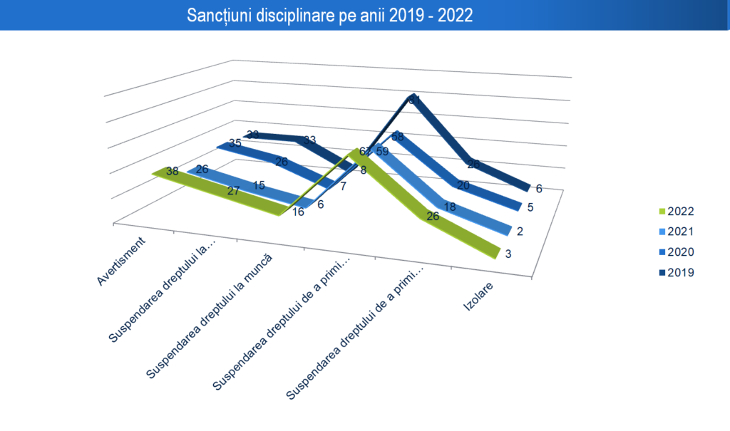 În urma acestor abateri au fost aplicate și sancțiuni, precum suspendarea dreptului de a primi şi cumpăra bunuri cu excepţia celor necesare pentru igiena individuală, suspendarea dreptului de a primi vizită sau de a participa la activităţi culturale, artistice şi sportive sau chiar izolare.